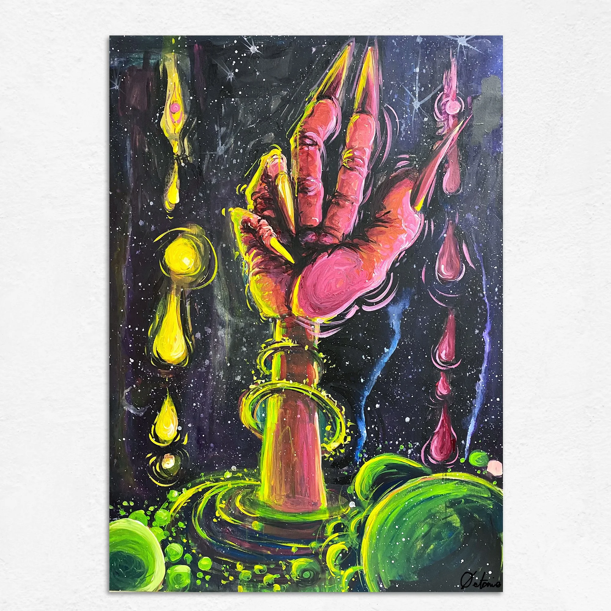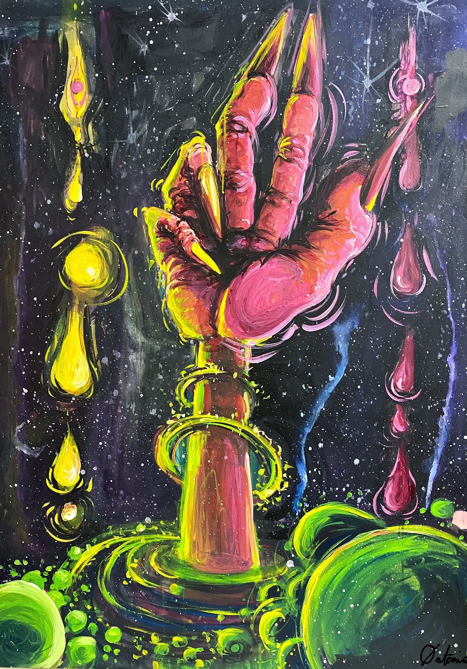 The Great Hand of the universe should never be questioned. Accept and appreciate its offereings - or else. Painted in 2020 for the Creep Show exhibition in DTLA.